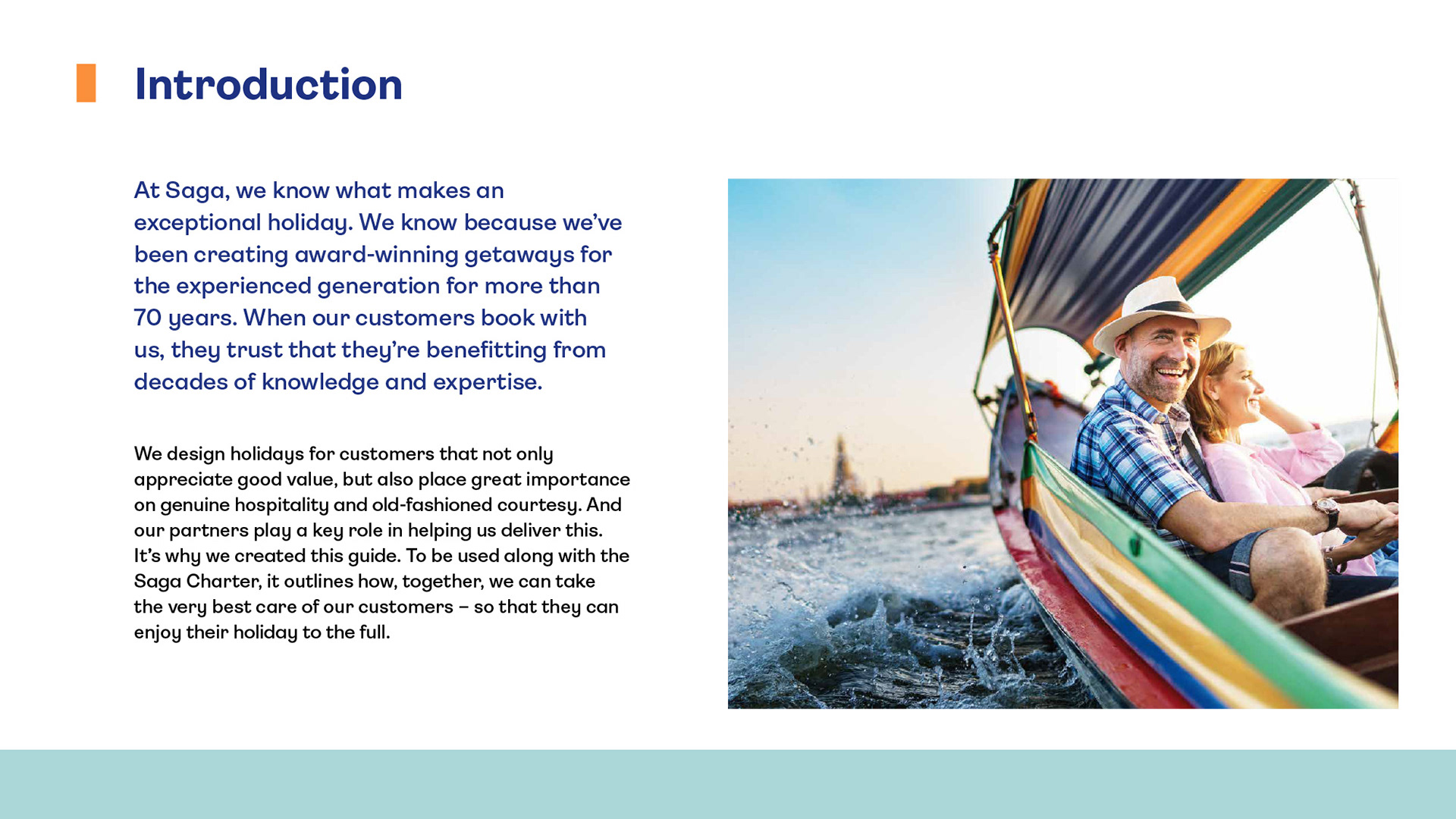 Some sample pages for an essential guide for hotel groups that outlines Saga and clarifying the standards we expect them to provide for our guests.